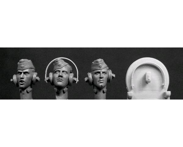 3 Köpfe deutsche Panzersoldaten Wehrmacht mit Schiffchen. Kopfhörer & Sprechtaste für alle sind enthalten.